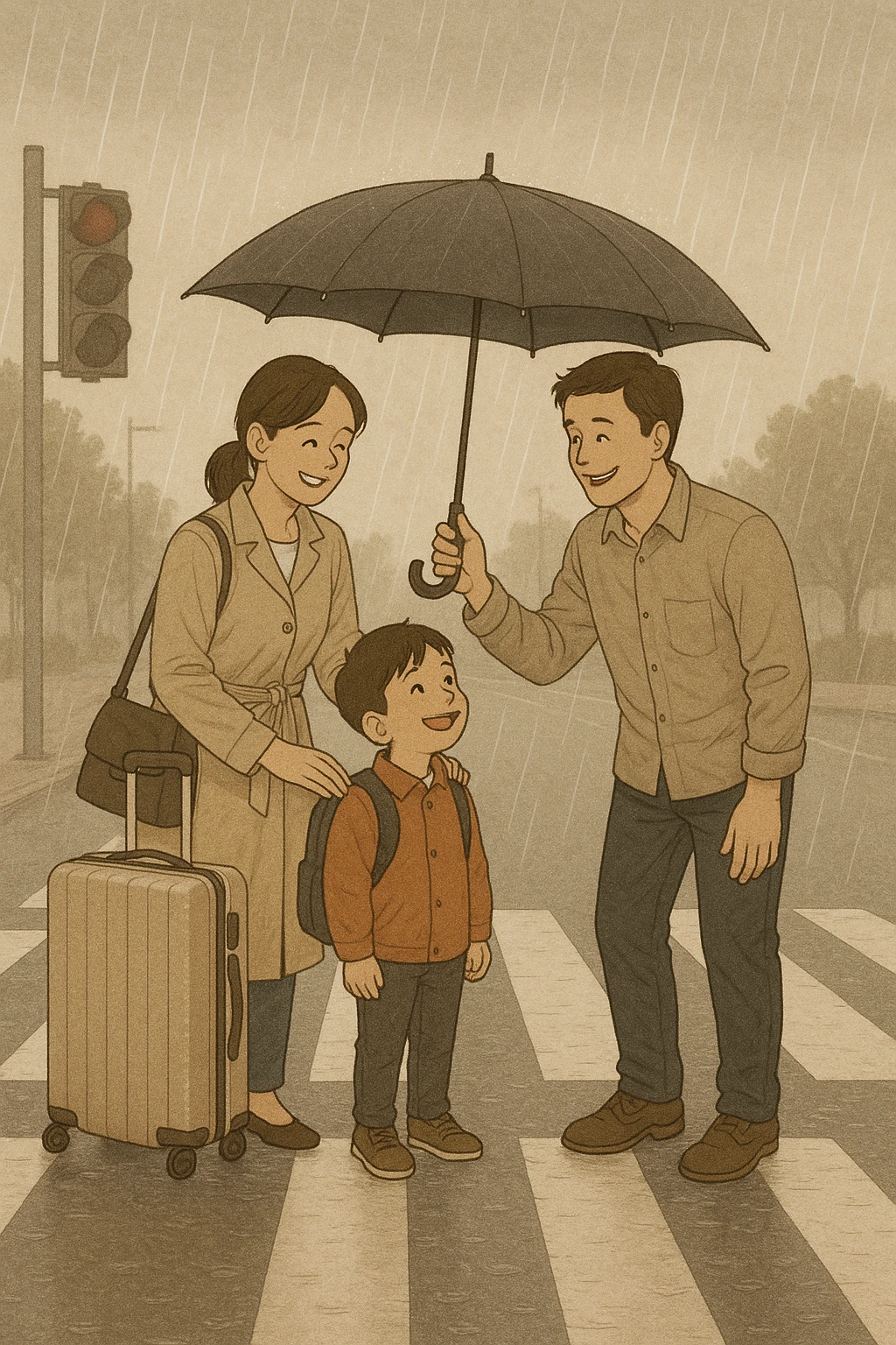 횡단보도 건너편에서 비를 맞던 어떤 어머니와 아이가 눈에 들어왔다.