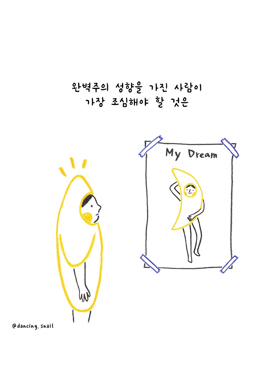 완벽주의적인 성향을 단기간에 바꾸어 버리기는 힘든 일이다. 이왕 완벽주의 성향이 있다면 완벽하지 않아도, 더 나아지지 않아도 자신의 존재 가치가 충분하다는 믿음을 안은 채로 완벽주의를 지향하는 것이 좋다. 그리고 편안한 마음으로 오늘도 그냥 존재할 수 있길.