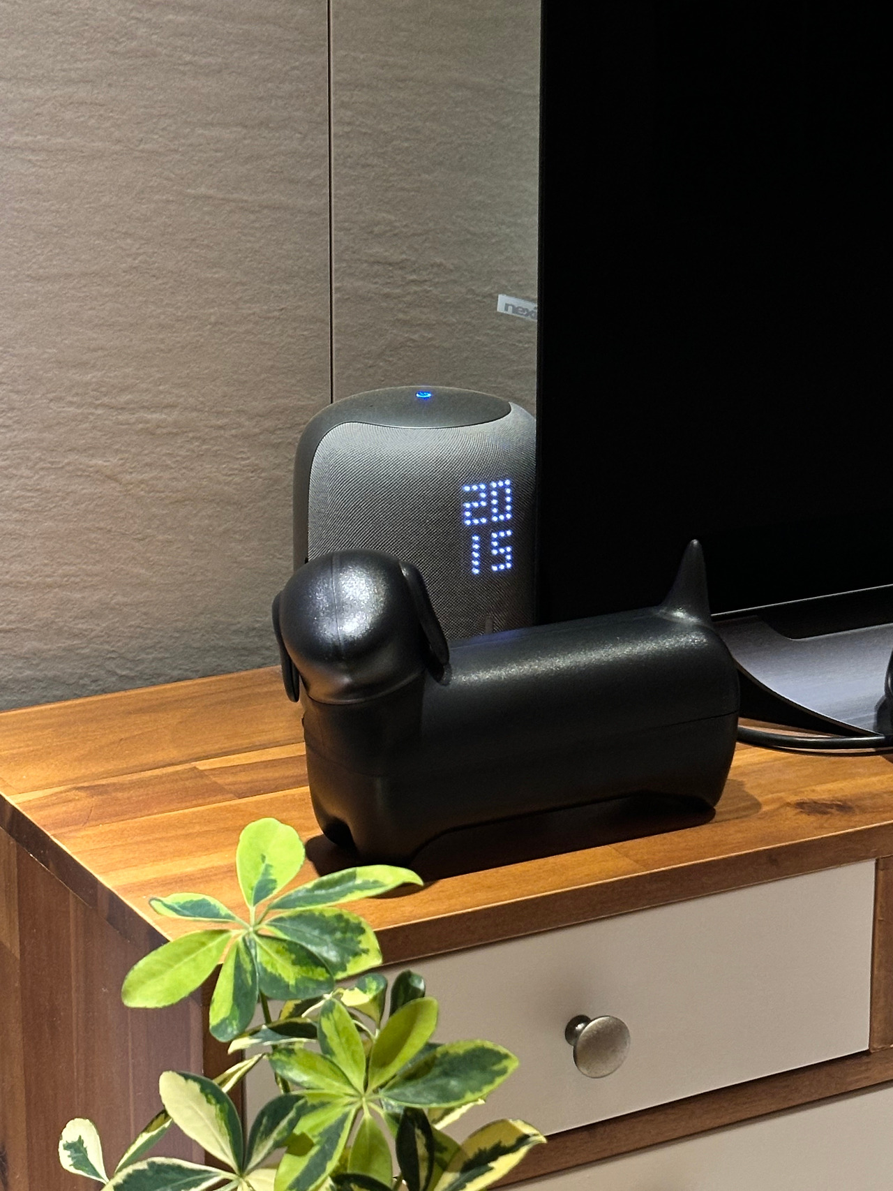 행궁동에 새로 생긴 편집숍에서 데리고 온 아이다. 퀄리라는 브랜드에서 만든 다용도 수납함인데 우리 집 티비 리모컨과 에어컨 리모컨을 담아두기 딱 좋겠다 싶어서 샀다. 마감도 훌륭하고 묵직하니 인테리어 소품으로도 아주 제격이다. 강아지 목도 360도 돌아간다. ‘초록을 좋아하는 강아지’ 컨셉으로, 우리 집 식물들을 바라보는 각도로 맞춰놨다. 보기 싫었던 리모컨들을 이 안에 쏙 넣어두니 우리의 공간이 훨씬 더 이뻐 보인다.