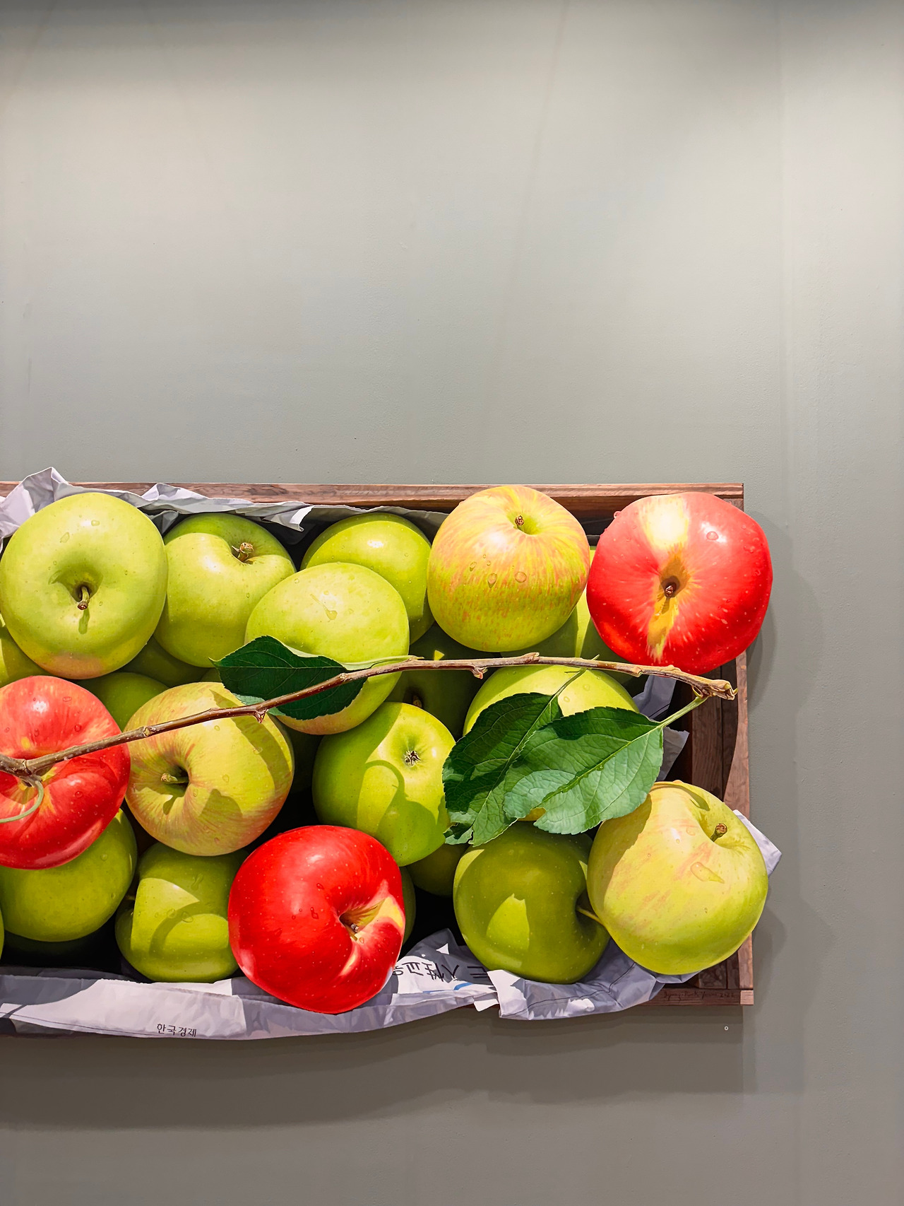 전시장에서 이런 문구를 봤다. "The most interesting thing about artists is how they live." (아티스트의 삶을 들여다보는 것. 그게 예술의 묘미다.) 그림을 있는 그대로 보는 것도 물론 좋지만, 작가에 대해서 알고 보면 좀 더 의미 있게 다가오는 것 같다. 일례로 윤병락 작가님은 사과로 유명한 경북 영주에서 나고 자라신 분이라고 한다. 사과의 고장에서 사과와 함께 오랜 시간을 보낸 작가의 사과 작품이라니. 이 사람의 사과는 어떤 사과일까 좀 더 궁금해지지 않는가.
