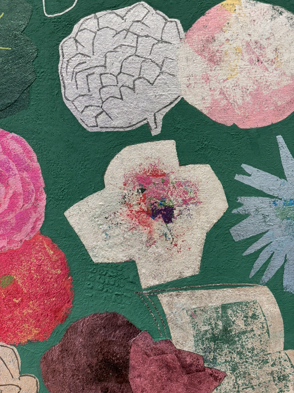 이번 2024 키아프에서 만난 작품 중 내 원픽은 유미선 작가님의 <My garden>이다. 이 작품 앞에서 가장 오랜 시간을 보냈다. 그림을 가까이서 들여다보니 은색 빛이 은은하게 묻어났다. 작가님은 은박을 1mm로 잘라서 일일이 선을 따라 그리는 기법을 선보이는 걸로 유명하다고 한다. 좋아하는 것들을 은박지로 촘촘히 새기는 행위가 작가에게는 어떤 의미일까 궁금해진다. 섬세한 작업이니만큼 마냥 즐겁지만은 않을 것 같은데 그 정성 덕분에 보는 사람들은 따뜻한 위로를 받는다. 관심이 생긴 작가가 생긴 것도 이번 키아프 참가의 수확이라면 수확이다.