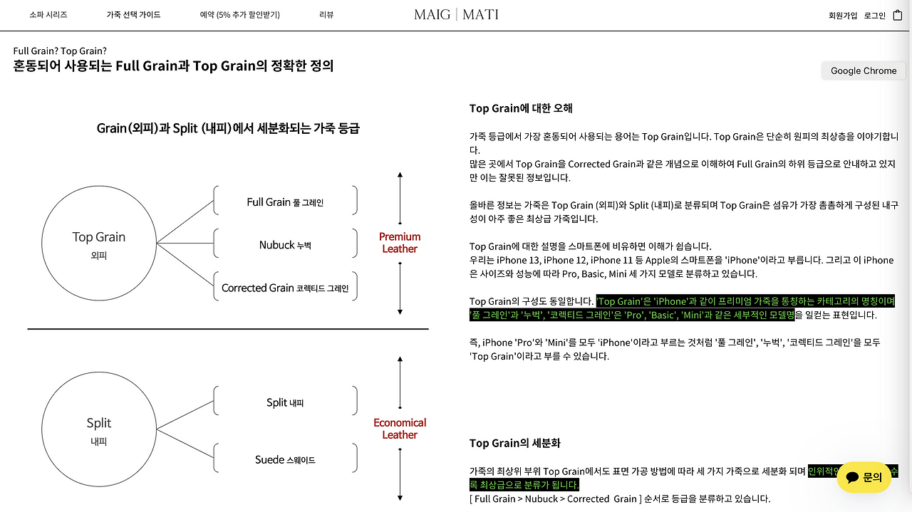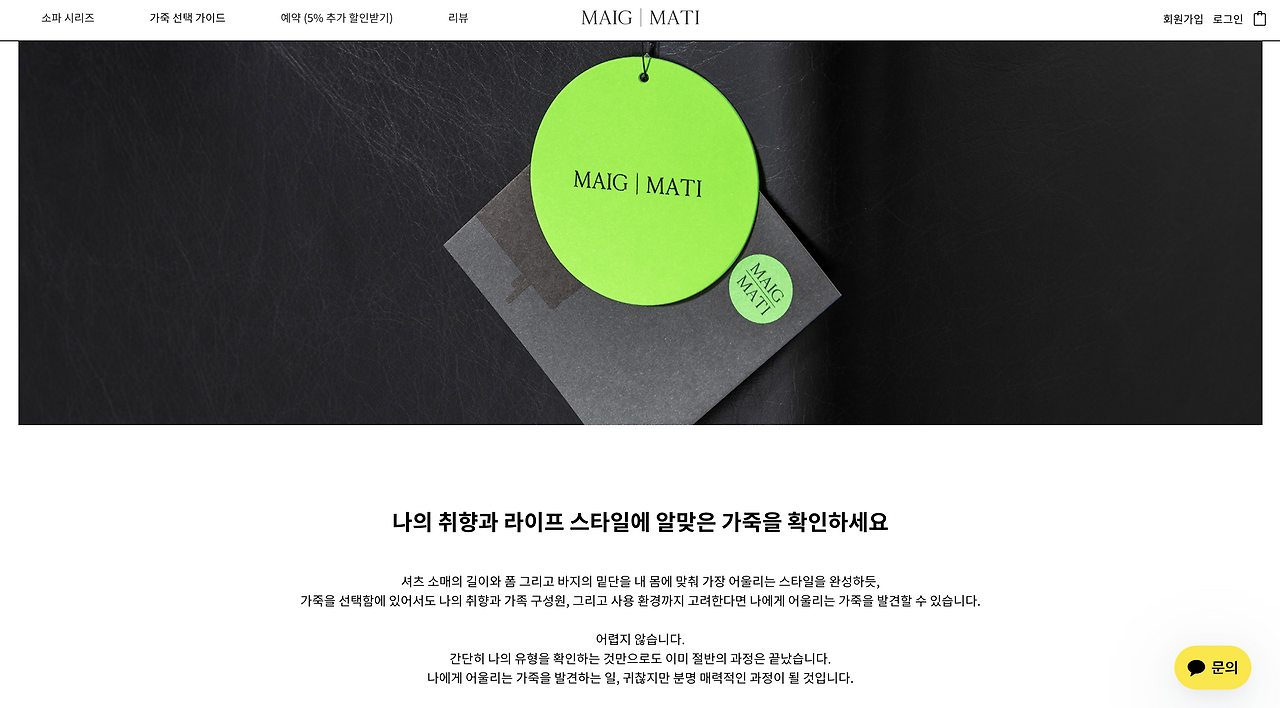 결혼 후 5년 간 함께 했던 소파와 이별을 결심하게 만든 브랜드, 메이그 마티(MAIG MATI). 메이그 마티는 2016년에 생긴 가죽 소파 전문 브랜드이다. '5월의 아침'이라는 뜻의 메이그 마티는 소파에서 보내는 일상의 시간이 아름답길 바란다는 의미다.