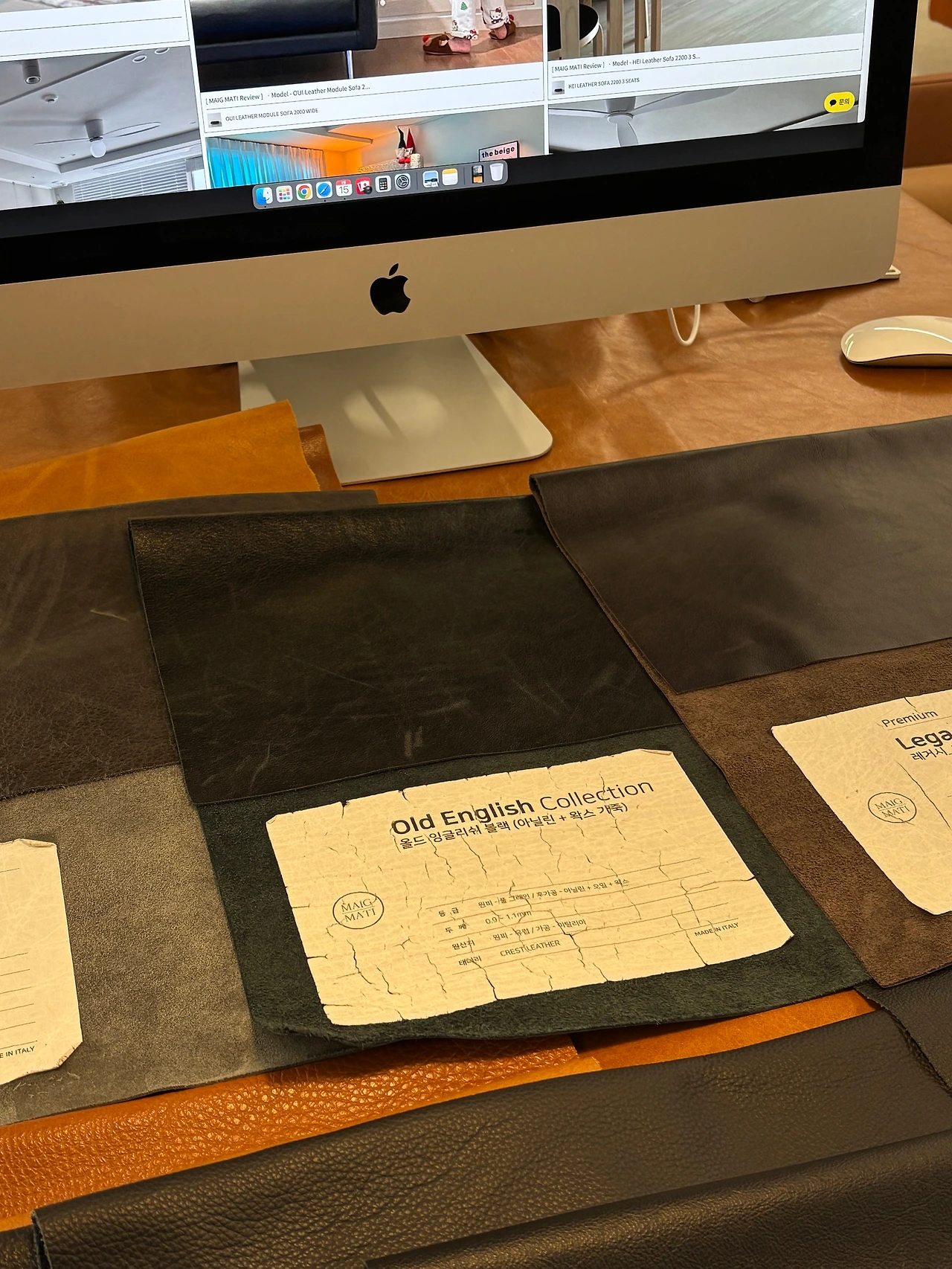 쇼룸에서는 메이그 마티 가죽 소파 전 라인을 직접 보고 만지고 경험할 수 있다. 가죽 전문 브랜드답게 각 가죽의 특장점에 대해 세세하게 알아갈 수 있는 시간이었다. 가죽도 다 같은 가죽이 아니라는 것, 공정 과정에 따라 결과 질감의 차이가 확연히 드러난다는 걸 체감할 수 있어서 좋았다. 그리고 보이지 않는 부자재 (지퍼, 실) 하나까지도 퀄리티를 신경쓰는 브랜드 라는 점에서 더욱 신뢰가 생겼다.