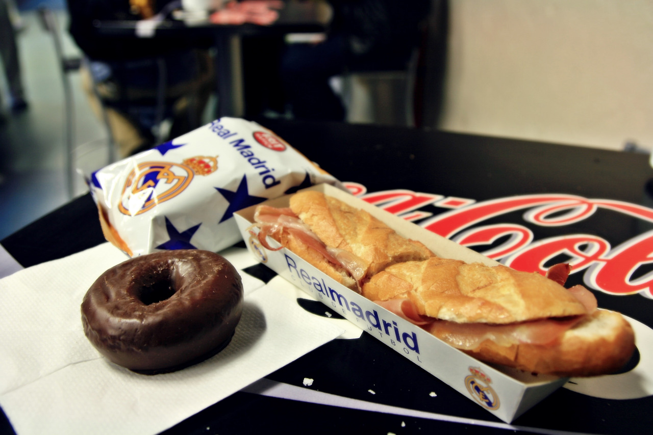 산티아고 베르나베우에서 팔고 있는 하몬 바게트. 스페인 사람들은 저 하몬을 어디서나 즐겨 먹는다.