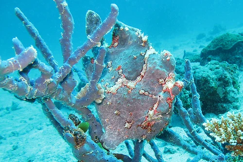 산호나 바위 위에서 해면동물(Sponge)이나 산호(Coral)의 일부,