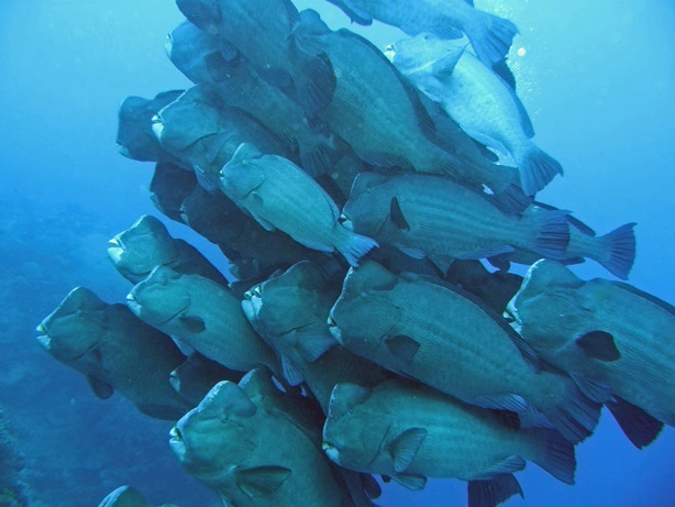 버팔로 피쉬는 주로 죽은 산호나 바위를 쪼아 먹고 사는데, 그 양이 실로 엄청나다.
