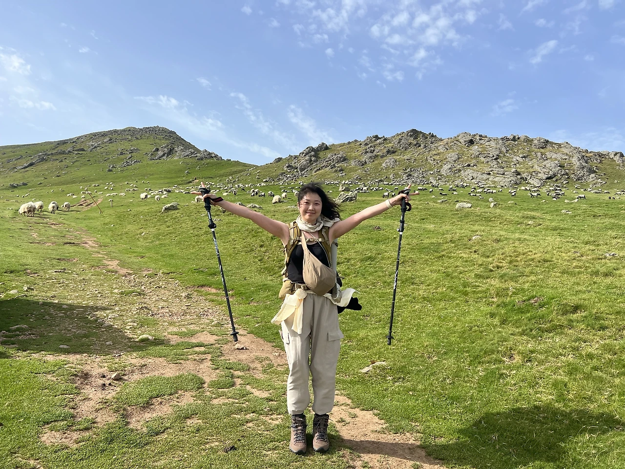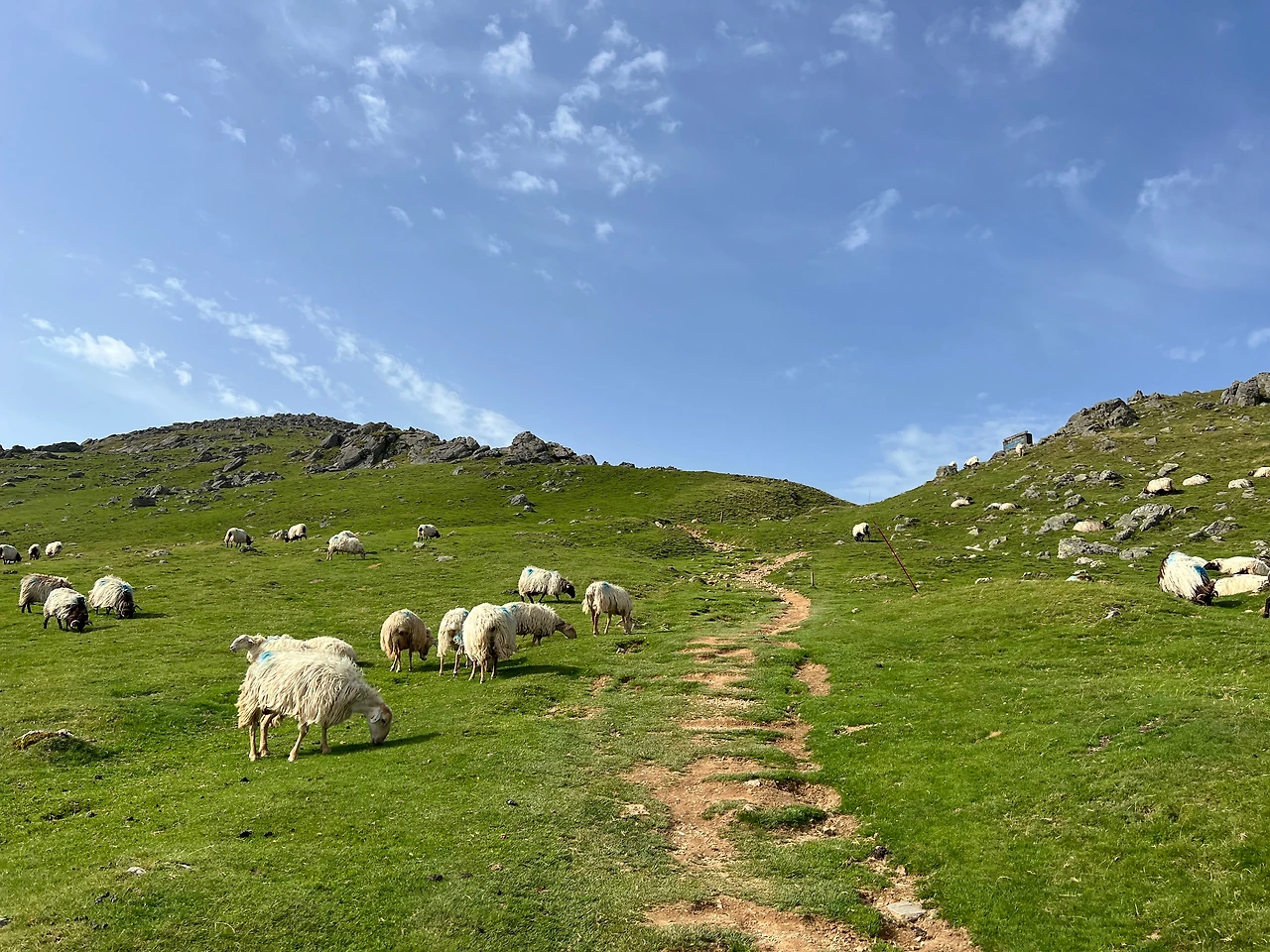 그렇게 얼마나 호흡을 했을까. 신기하게 다시 걷기가 됐다. 내딛는 발걸음이 조금은 가벼워지더니 미비했던 속도도 조금씩 나기 시작했다. 와중에 높고 푸른 무색한 피레네 산맥. 왜 이곳에 있는지 모르겠는 양들과 말의 응원을 받으며 호기로운 걸음을 내딛었다.