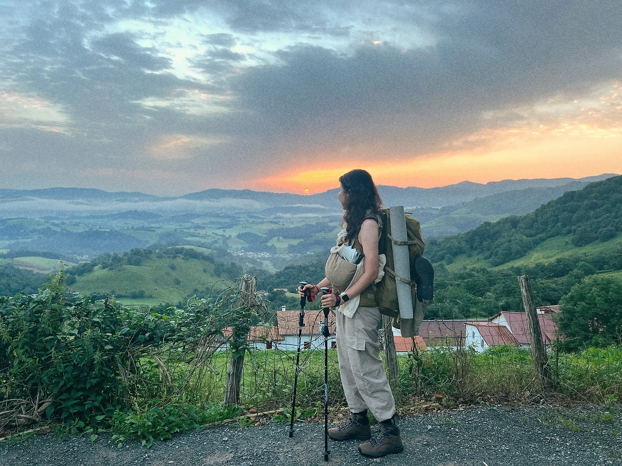 이 놓치고 싶지 않은 순간을 서투른 언어로 부탁해 사진 한장을 얻어냈다. 2023년 7월 18일 6시 43분. 귀한 첫 까미노 일출과 나. 대체 이게 뭐라고 내게 이렇게나 클까.