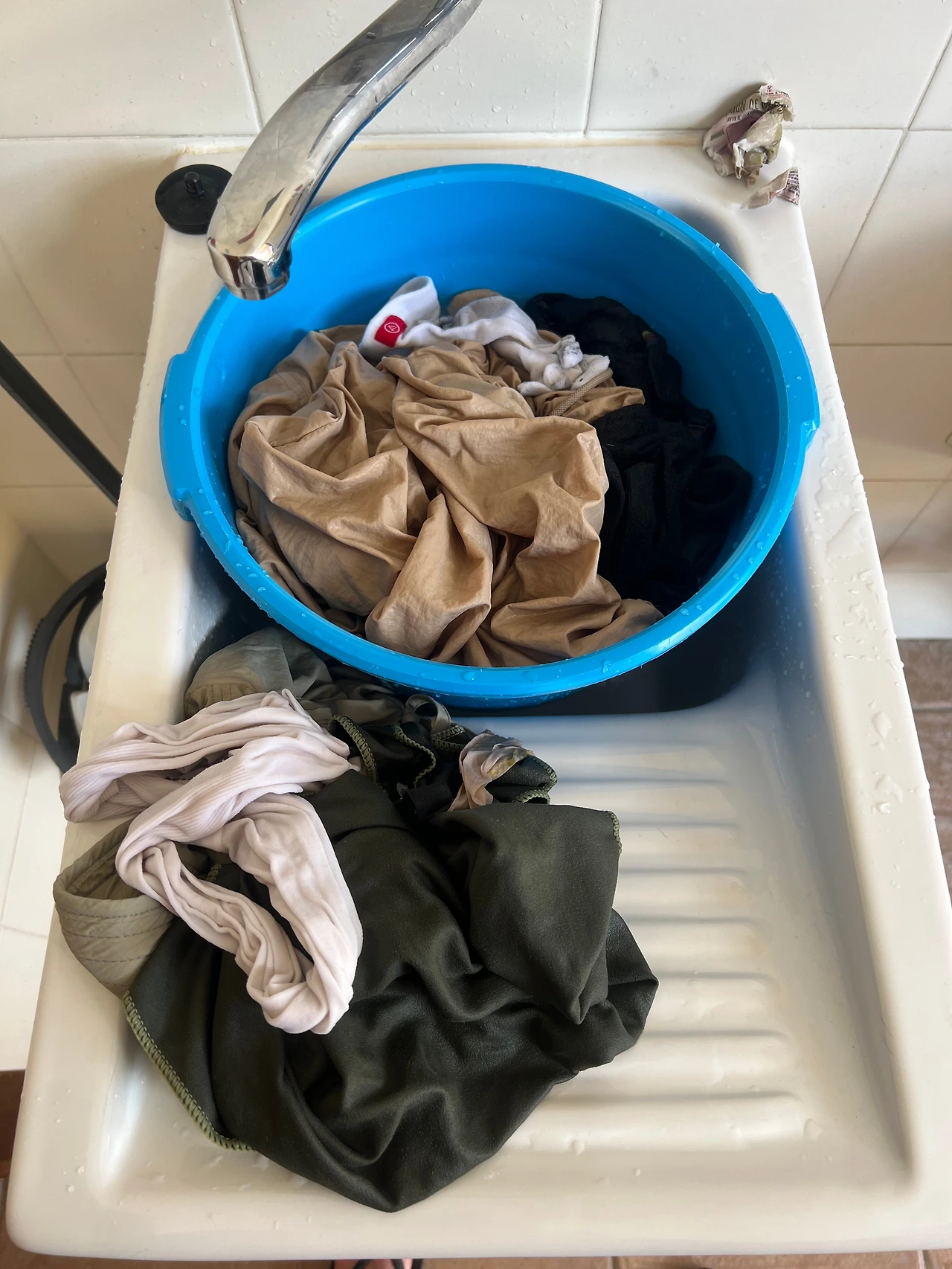 걸음을 마치면 옷을 빨리 벗어버리고 싶다는 생각뿐이다. 길 위에서 얻어 온 먼지들로 뒤덮인 옷과 살 사이의 끈적한 땀들은 한동안 식을 줄 모른다. 하나씩 벗을 때마다 그날의 고행을 내던지는 희열감까지 느껴졌다. 그리고 걷는 내내 묵혀온 이 잔여물들은 머리부터 발 끝까지 비누 하나로 완벽하다. 샴푸와 린스는 여기서 그다지 중요하지 않았다. 이 비누는 빨래에서도 빛을 발한다. 각 알베르게에 배치된 대야에 비눗물을 풀어 곁가지 옷들을 조물딱거리면 여간 개운할 수 없다. 탁해진 물이 하수구로 빠져나가는 걸 지켜보는 것도 재밌을 일이라니. 내가 이렇게 빨래를 좋아했던가.