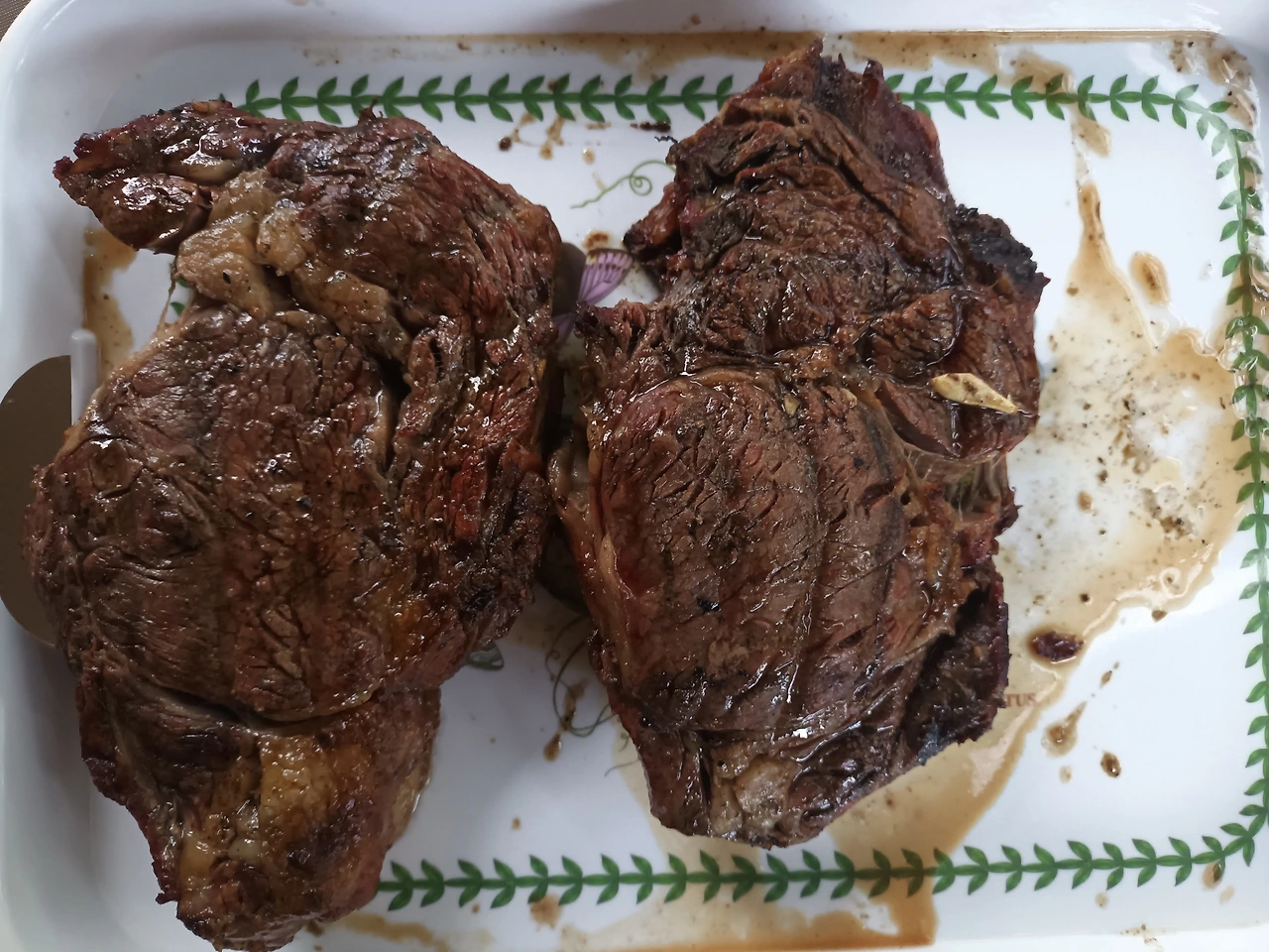 선배 부부가 준비해 간 '립 아이 소고기'에 안주인은 올리브유로 마사지하듯 잔뜩 바르고 소금을 휘리릭 뿌리고는 마늘을 칼등으로 '탕탕' 치더니 고기 양쪽에 올린다. 양송이버섯 요리는 올리브유와 소금과 후춧가루만 넣고 프라이팬에 익히고 아스파라거스는 올리브유, 소금, 후춧가루 그리고 파마산 치즈를 뿌려서 오븐에 구워낸다.
