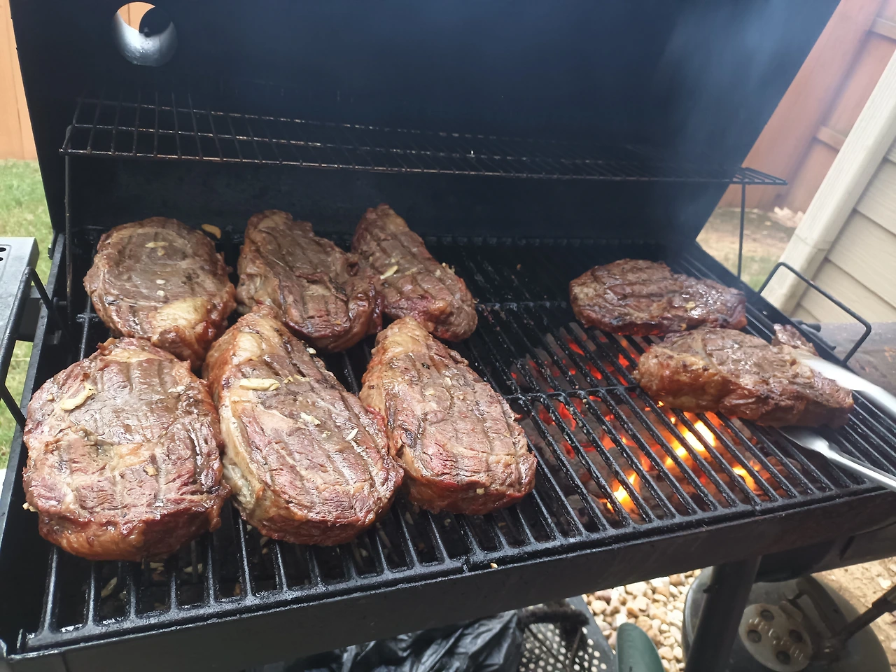불을 잘 피운 조개탄을 야외용 그릴 밑에 깔고 두껍게 썰어 밑간을 한 꽃등심을 그 위에 올린다. 고기가 잘 익도록 그릴 뚜껑을 덮고 나서 타이머를 맞춘 주인장의 손은 이리저리 바쁘지만 손님을 맞이한 그의 얼굴엔 웃음이 넘친다.