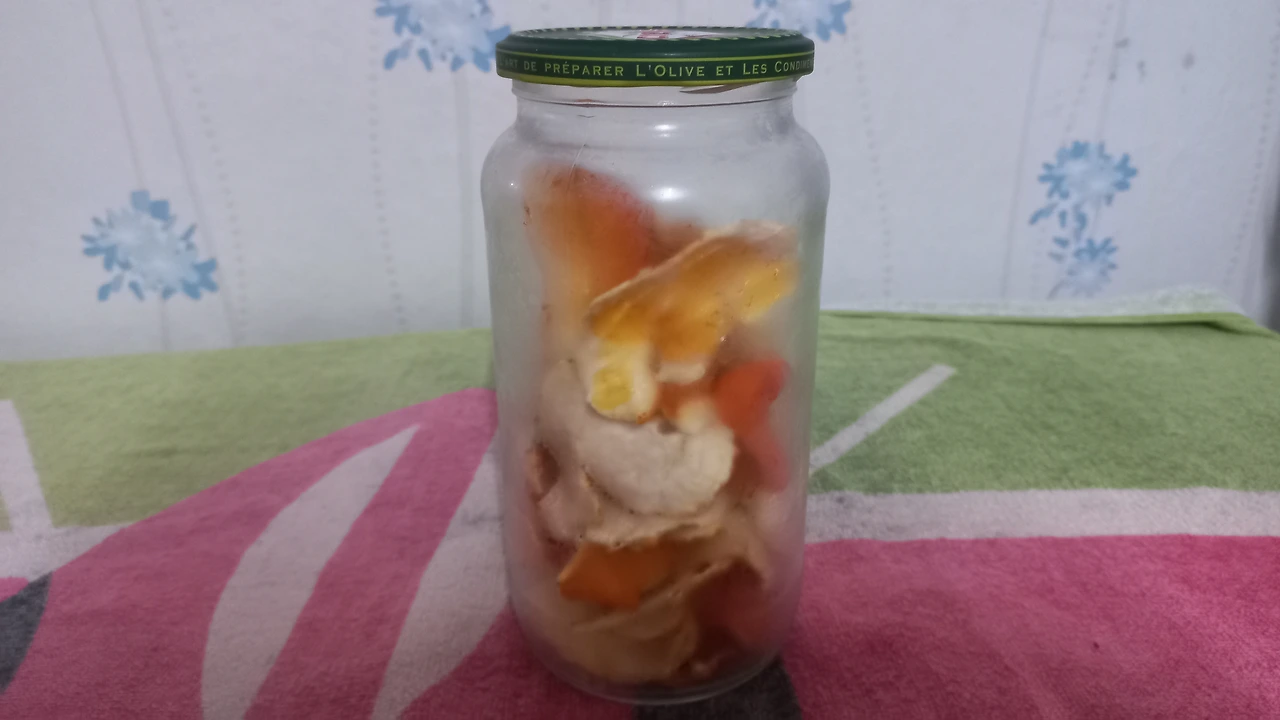 과일 껍질은 실온에서 말리게 되면 곰팡이가 쉽게 생기거나 작은 벌레들이 꼬인다. 보관할 때도 바싹 말려야지만 오랫동안 두고 먹을 수 있다. 다 말린 껍질은 지퍼팩이나 병에 담아 냉장고에서 보관한다.