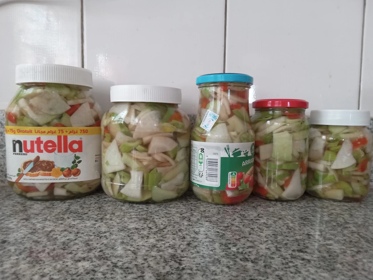 사이즈가 제각각인 유리병 안에 무와 차요태, 텃밭에서 딴 방울토마토, 서양파, 작은 매운 고추와 통후추를 꾹꾹 눌러서 채우고는 물과 소금, 설탕을 넣고 끓이다가 마지막으로 식초를 추가한다. 그 간단한 소스를 뜨거울 때 병 안으로 가득붓는다.
