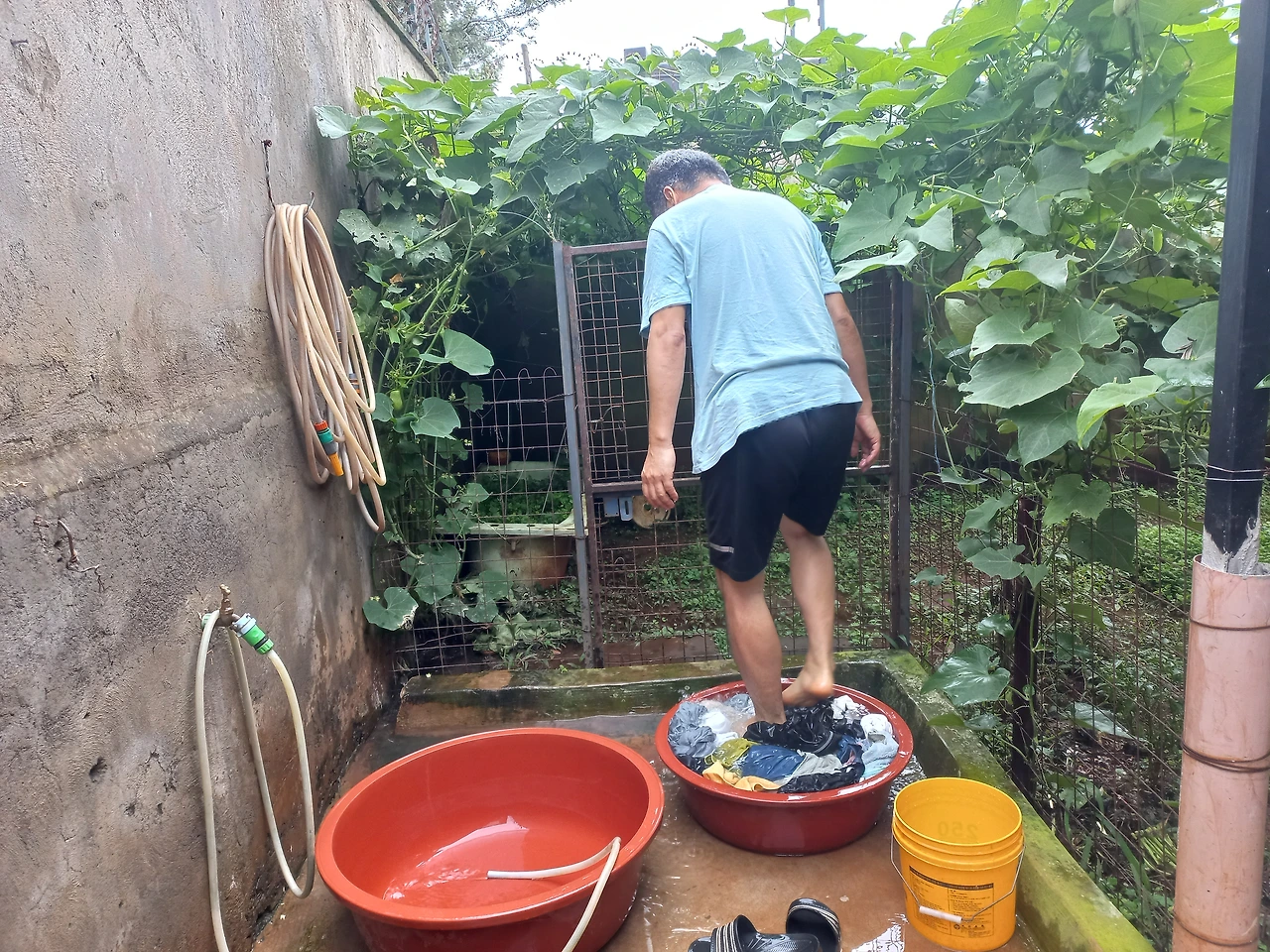 4.12년째 사용한 세탁기가 탈수는 되는데 세탁이 안된다. 남편이 발로 세탁을