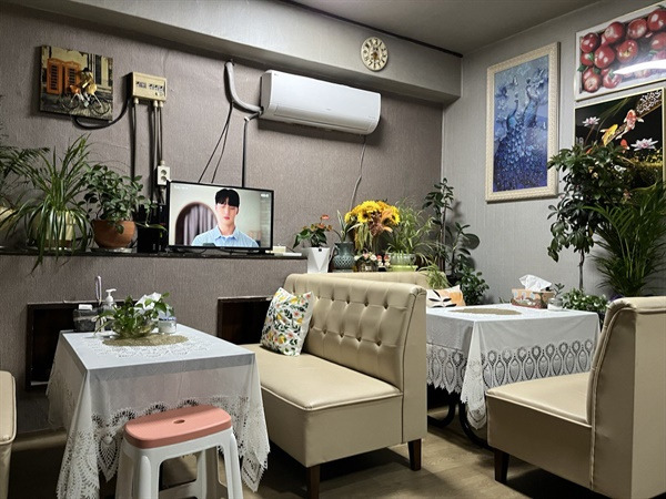 인생사 새옹지마라! 정말 쿵짝쿵짝 네 박자가 맞다. 영원한 번영도 영원한 쇠락도 없었다. 저녁 9시가 넘어가는데 다방에서 간간이 불빛이 새어 나온다. 주인장이 마실을 갔는지 기다려도 오지 않는다. 작은 텔레비전과 벽을 가득 메운 화려한 액자들만이 우리를 맞는다.