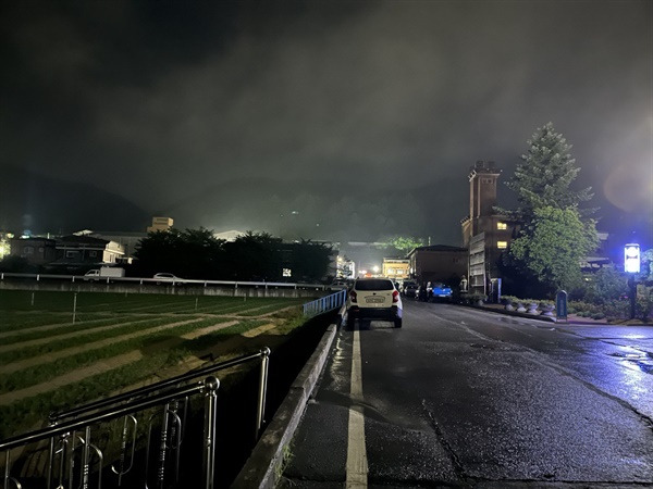멀리 정면으로 무궁화호가 철선을 따라 달리고 있다. 좌측은 춘양 할매들의 돈줄이 되는 춘양양묘사업소, 우측엔 춘양면사무소가 있다. 불빛이 환해 늦은 밤이라도 걷기에 너무 좋은 곳이다