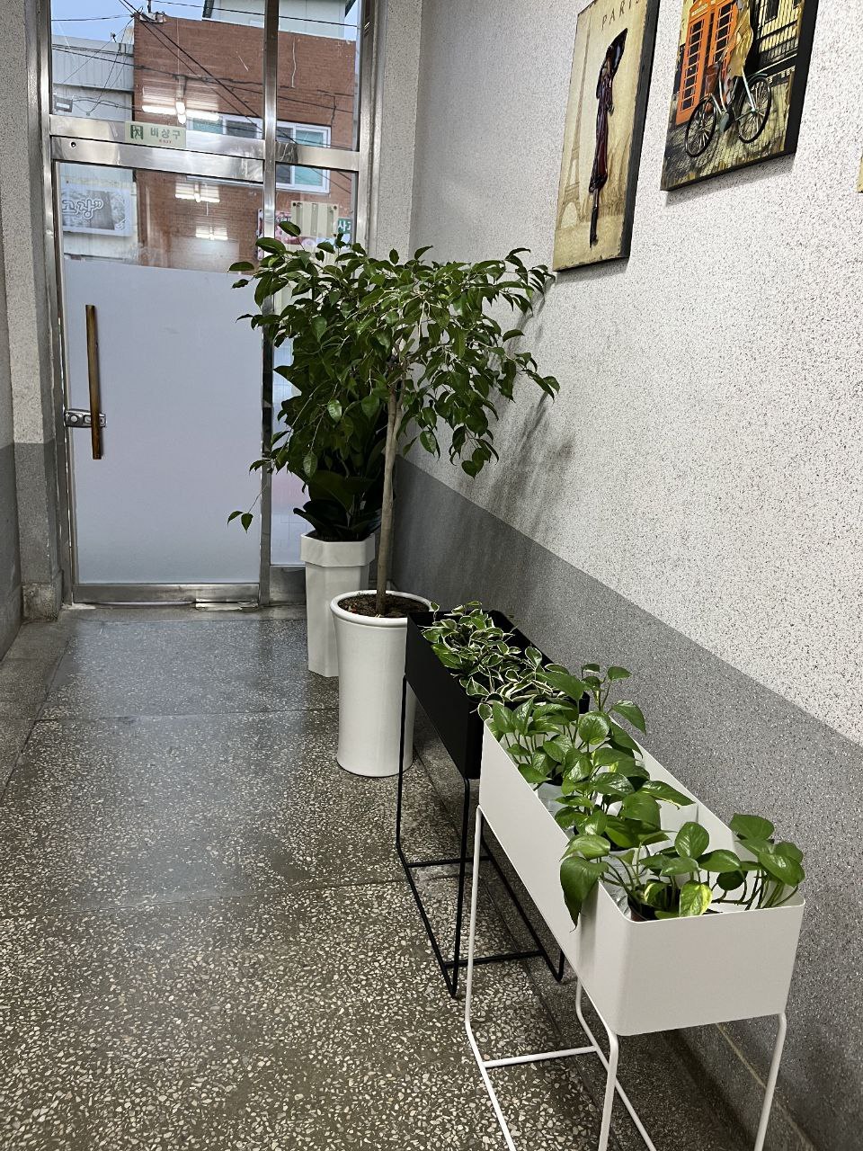 참 작은 목욕탕, 지역사회이자 시골이기도 해서 목욕탕 관리가 잘 될까 하는 작은 염려도 있었지만 기우였다. 목욕탕에 들어서면 왼편에 잎이 윤기가 반질반질 나는 푸른 식물들이 얌전히 앉아 손님을 반겨준다.