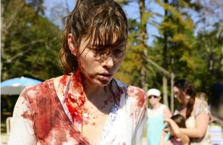 코라는 행복해 보이는 한 커플을 바라보고 있습니다. 그들은 음악을 크게 틀었고 그녀는 음악을 견딜 수 없습니다. 코라는 아이에게 과일을 깎아주던 칼을 들고 달려가 한 남성을 마구 찌릅니다. 코라는 남편의 제압으로 일곱 번을 찌른 후에야 멈추게 됩니다. 평화로웠던 호숫가는 순식간에 비명이 난무하는 아수라장이 되죠.