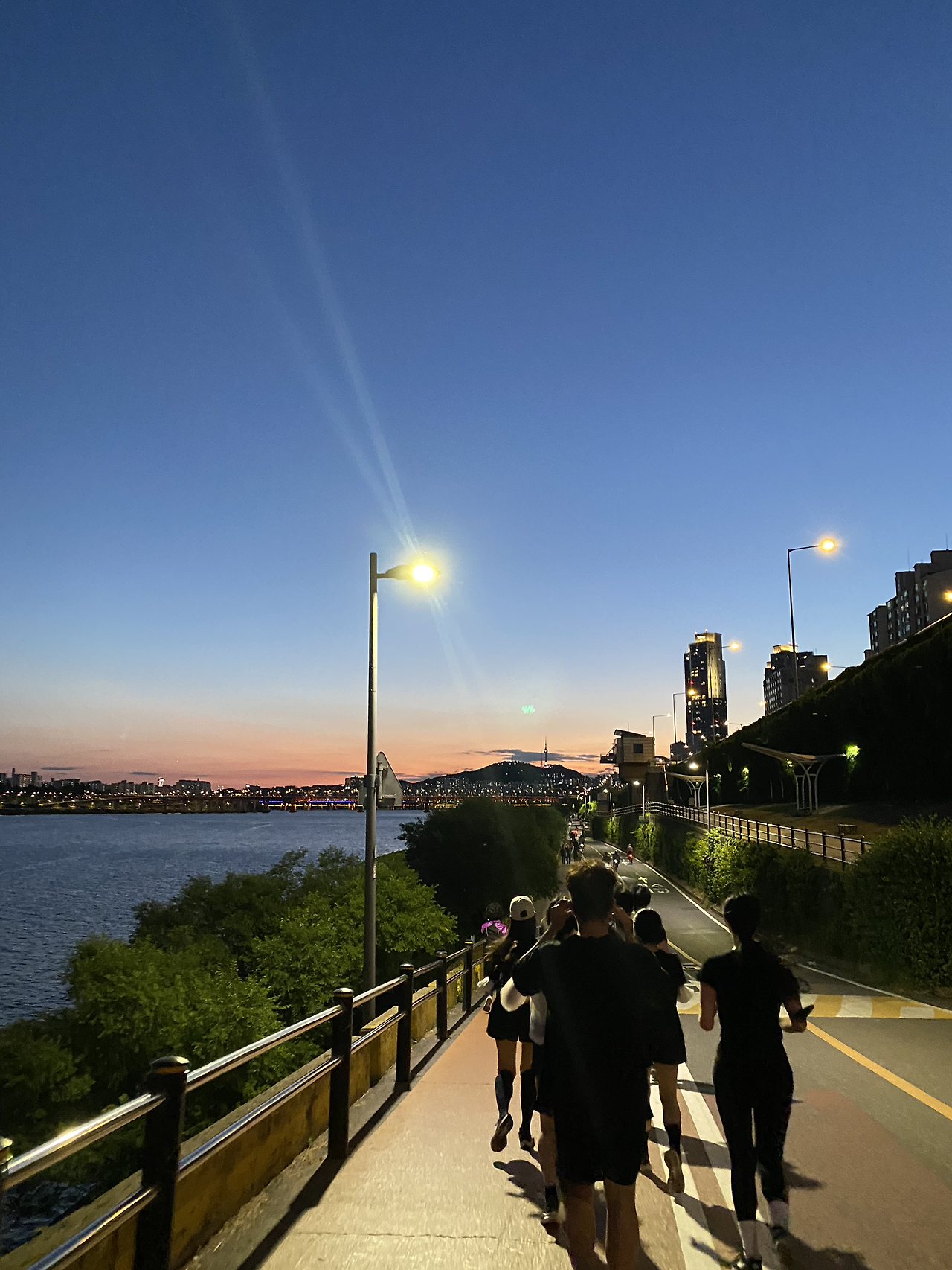 솔직히 말하면 너무 무서웠다. 이름도 잘 모르는 낯선 사람들과 함께 뛴다는 게 굉장히 부담스러웠다. 에버랜드 T 익스프레스도 이것보다는 덜 무서워했던 것 같은데, 말 그대로 쫄아있었다. 집에 몇 없는 운동복을 주섬주섬 챙겨 입은 나와 달리, 머리부터 발끝까지 블랙으로 도색한 건장한 분들 앞에 서있자니 뛰다가 곧 나가떨어질 나의 미래가 보였달까. 너무 뒤처지면 같이 뛰는 분들에게 민폐가 되는 건 아닐까, 어느 정도 빨리 뛰게 되는 걸까, 뛰다가 너무 힘들면 멈춰도 될까, 돌아와도 될까... 온갖 걱정을 하느라 다 같이 몸을 푸는데 쥐가 날 것 같았다. '저기서부터 뛰시죠'. 러닝 번개를 연 벙주님이 말씀하셨고, 크루 전체가 뛰기 시작했다. 이 날 나는 당연히 역시나 가장 늦게 도착했고, 죽을 것 같은 표정을 짓고 입에서 피맛이 나는 것 같다며 중얼거리며 집으로 돌아갔다.