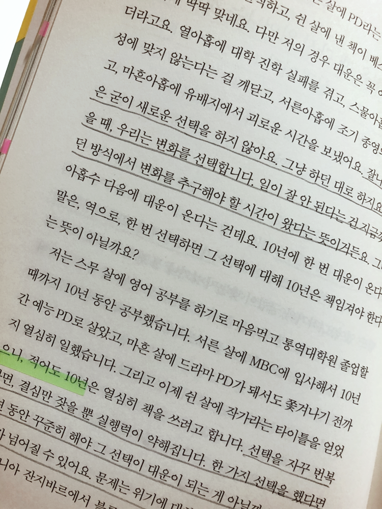 <38쪽> 돌아가자. 돌아가서 다시 한번 도전해보자. 결과는 알 수 없지만, 오늘 나는 내 몫의 돌을 쪼겠다. 뜻대로 안 되면 어때요? 그것 또한 인생인데.
