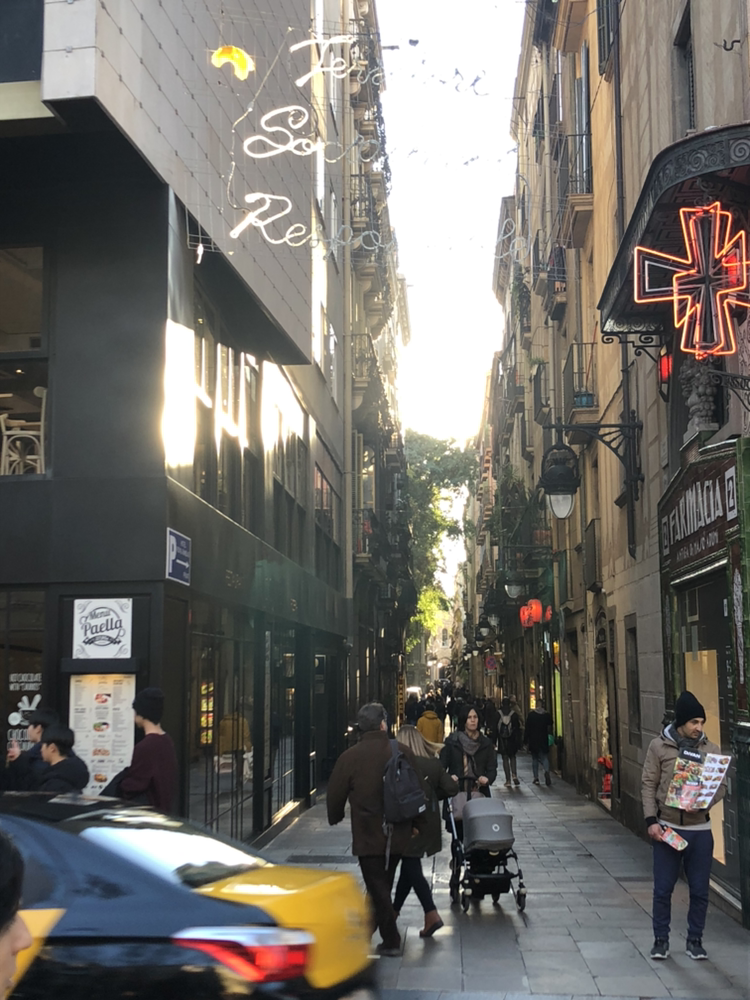 숙소가 있던 그라시아 거리를 지나 카탈루냐 광장을 거쳐 람블라스 거리를 걸었다. 람블라스 거리에서 방향을 꺾어 골목을 들어서면, '바르셀로나 대성당'을 지나 고딕지구, 보른지구를 만날 수 있다. 그라시아 거리가 화려한 쇼핑의 거리라면 람블라스는 파리의 샹젤리제를 닮은 거리였다. 오가는 사람들이 북적이는 람블라스 거리에서 골목으로 들어선 것뿐인데도 느낌은 달랐다.