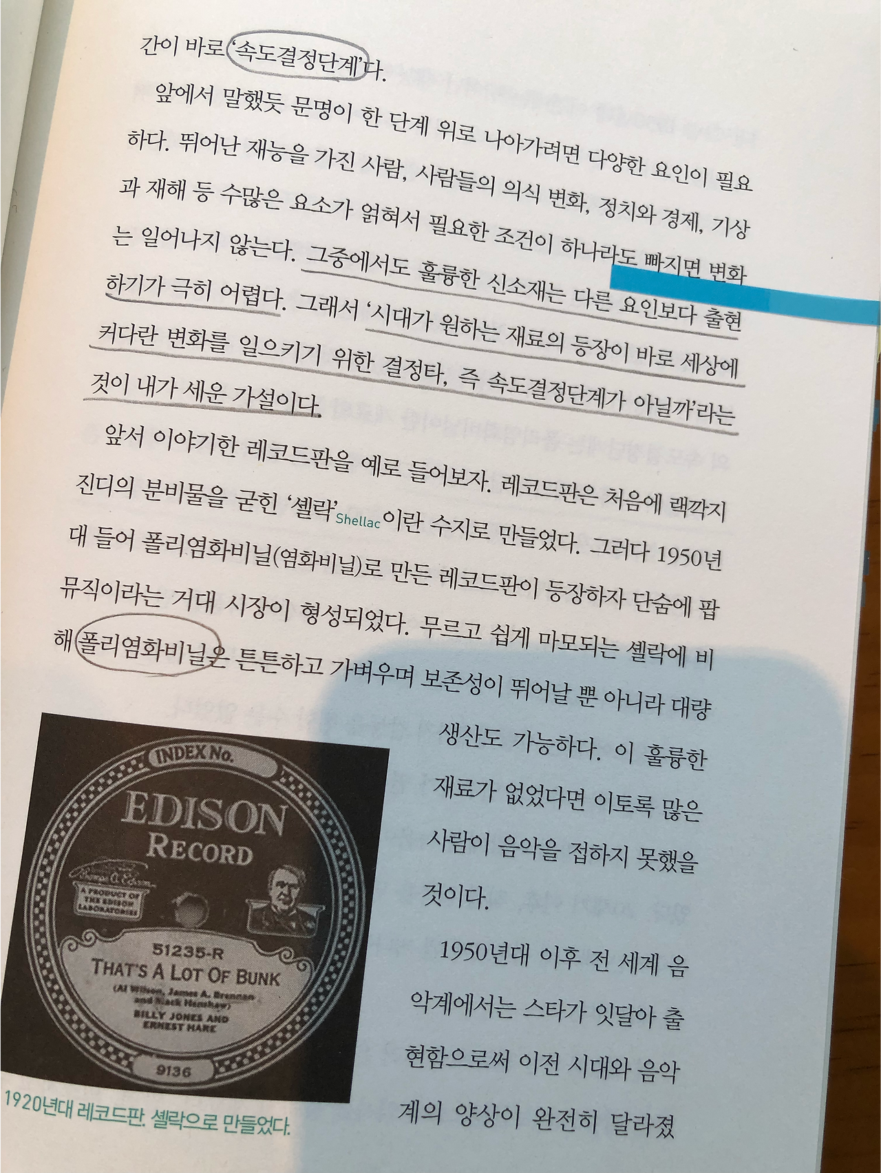 이 책이 나의 흥미를 이끌었던 것은 두 가지였다. 한 가지는 '세계사'라는 것과 다른 한 가지는 '신소재'라는 부분이었다. '세계사'가 기존의 나의 관심사의 영역이었다면, '신소재'는 그간 잘 알지 못한 분야에 대한 호기심이었다. 이 책이 이 두 가지를 어떻게 통합하여 다루었을까.