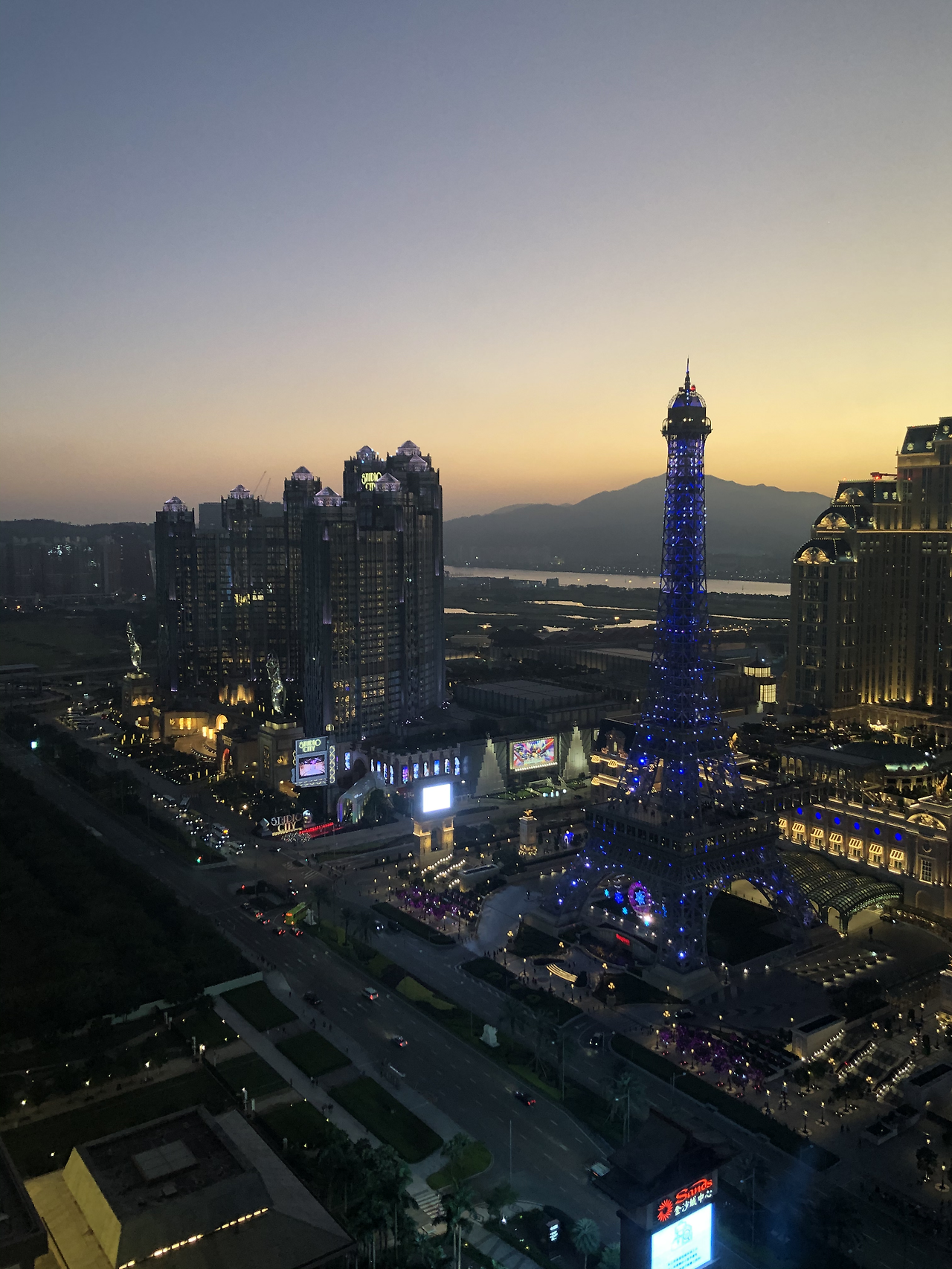 마카오는 마카오 반도와 타이파 섬, 코타이 섬 지역으로 나뉜다. 본래 마카오는 중국 본토와 맞닿은 반도 지역만 있었고 나머지는 매립으로 만들어진 도시라고 했다. 호텔은 대부분 코타이 섬 지역에 몰려 있는데, 커다란 대로를 가운데 두고 양쪽으로 높다란 호텔들이 줄지어 섰다. 11월은 마카오의 초겨울 날씨라고 했지만 낮 기온은 25도 정도로 걷기에 좋았고 아침저녁으로는 가벼운 가디건이 필요할 만큼 선선했다.