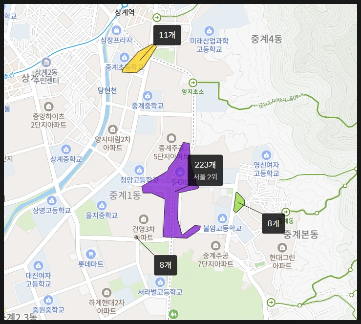 수도권이 아닌 지방에 거주하는 분들이라면 대치동이라는 이름은 아는데 대치동의 위치를 모르는 경우가 많습니다. 강북에서 최고 학군지로 알려진 중계동은 더욱 모릅니다.