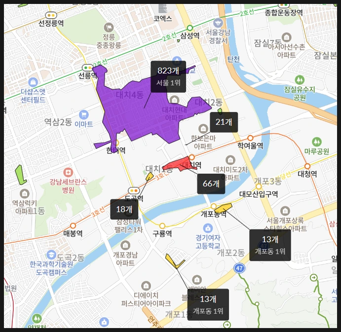 서울 3대 학군지로 알려진 대치동은 강남구에 위치해 있습니다.