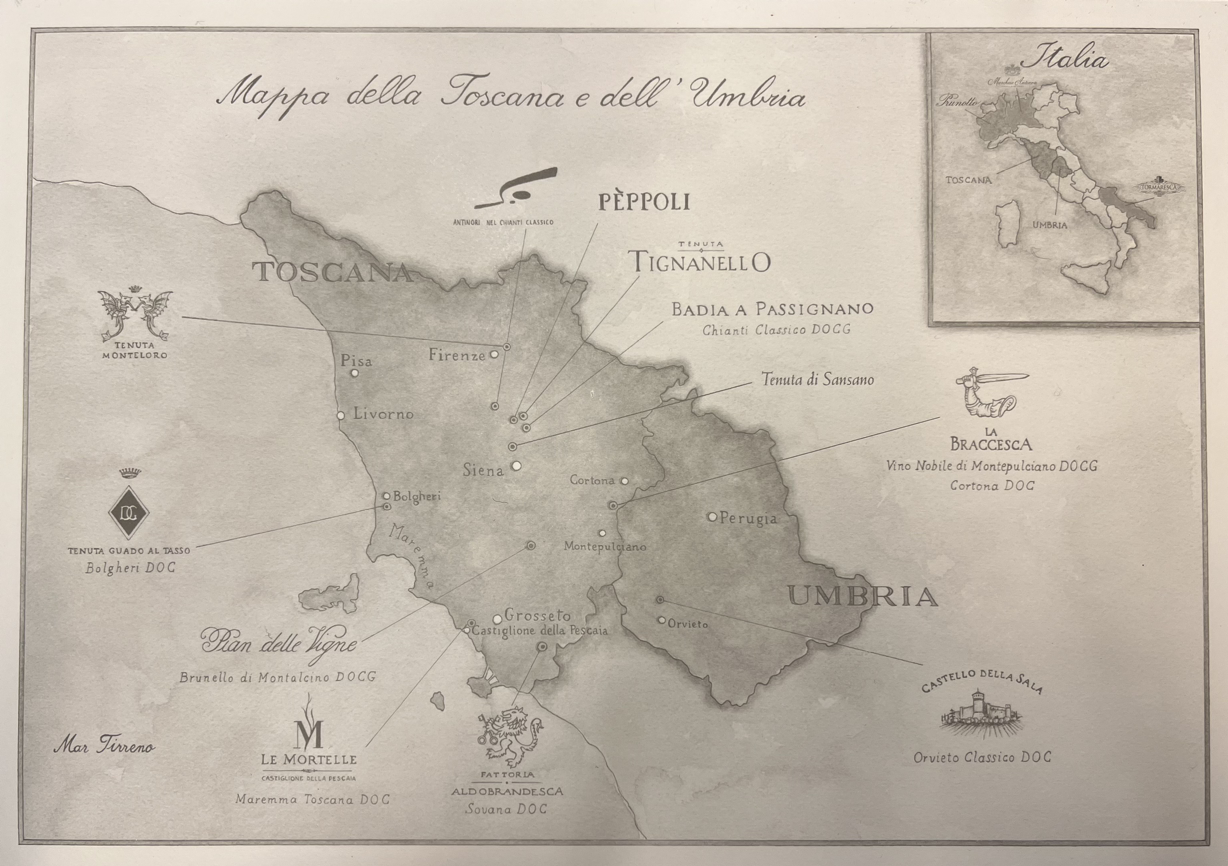 그러다가, 1971년 까다로운 이탈리아 와인법을 따르지 않고, 세계적으로 많이 쓰이는 품종(까베르네 쇼비뇽)을 토스카나의 산지오베제와 블렌딩하여 와인 애호가들의 열광을 받게 한 와이너리가 바로 토스카나에 있다. 안티노리 와이너리의 티냐넬로.