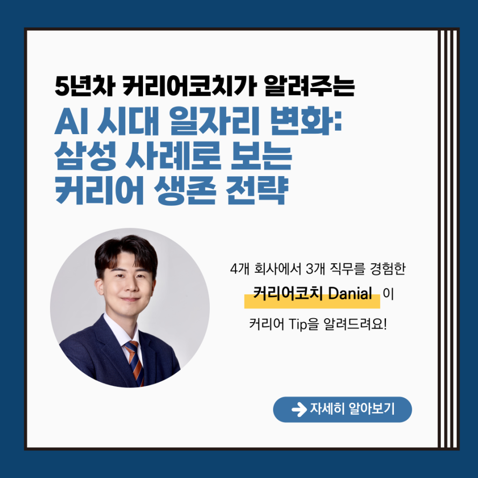 오늘은 삼성전자의 사례를 통해, AI 시대에 살아남기 위한 커리어 생존 전략을 함께 고민해보려 합니다.