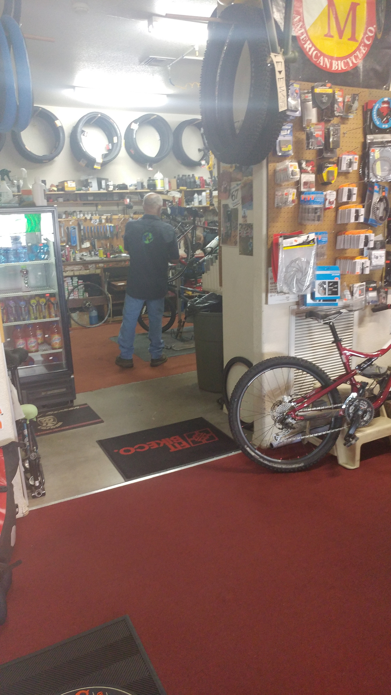 그렇게 한 두 시간이 지났나. Kingman에 있는 자전거 샵을 어찌어찌 물어보면서 찾아왔다. 근데 내 자전거에 맞는 짐받이가 없단다. 그래도 한 2km 거리에 월마트가 있다.