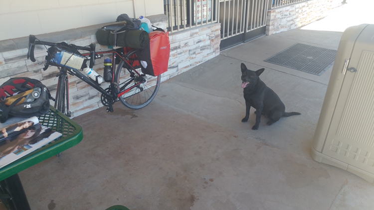 등 뒤 쪽으로 바람이 부는 덕분에 12시 좀 지나서 80km 지점의 주유소까지 도착할 수 있었다. 점심을 때우고 지나가는 사람들과 이야기를 하니 한 시. 다음 주유소까지 40km가 떨어졌는데 이미 온도가 40도가 되었기에 그냥 기다리기로.