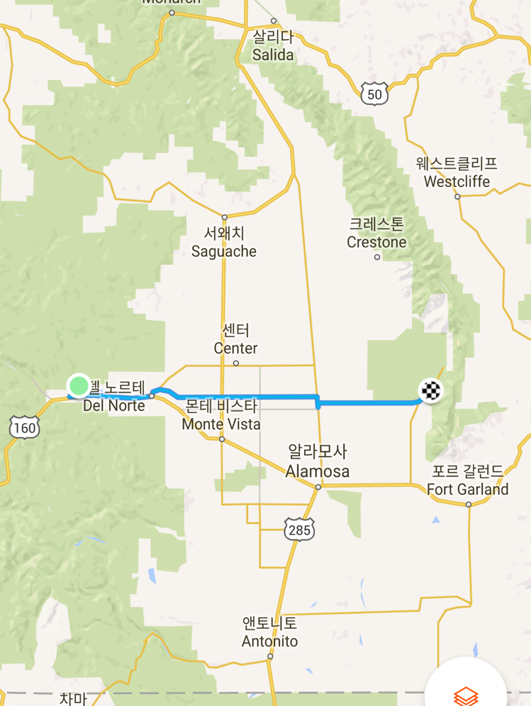 오늘 탄 거리:108km (South Fork ~ Great Sand Dunes)