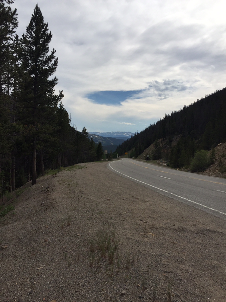 정상에서 사진을 찍고 내리막길 시작. 여기부터 덴버까지 쭉 내리막이다. 길을 잘못 들어 Interstate 고속도로를 타는 바람에 차들한테 경적 세례를 받기도 했지만 이쯤 되니 그런건 신경도 안 쓴다.