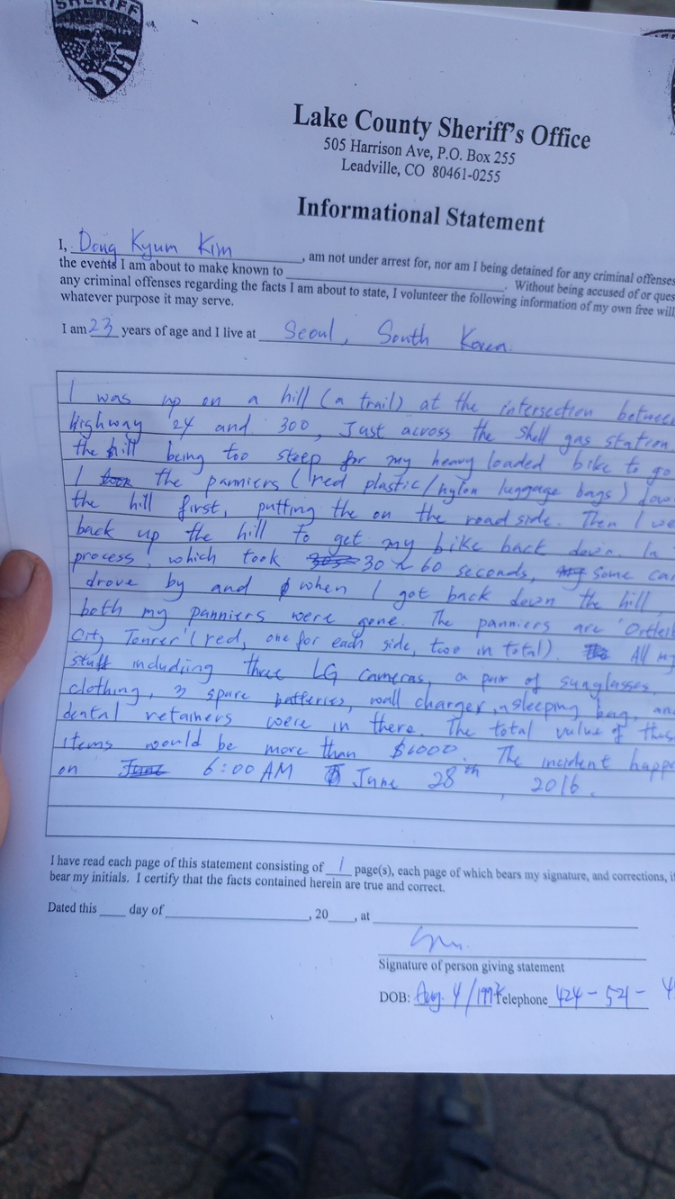 한 시간 정도 지나서 마음이 좀 침착해질 때쯤 일단 Leadville에 있는 경찰서에 가기로 했다. 난생 처음 경찰서에도 와보게 됐다.