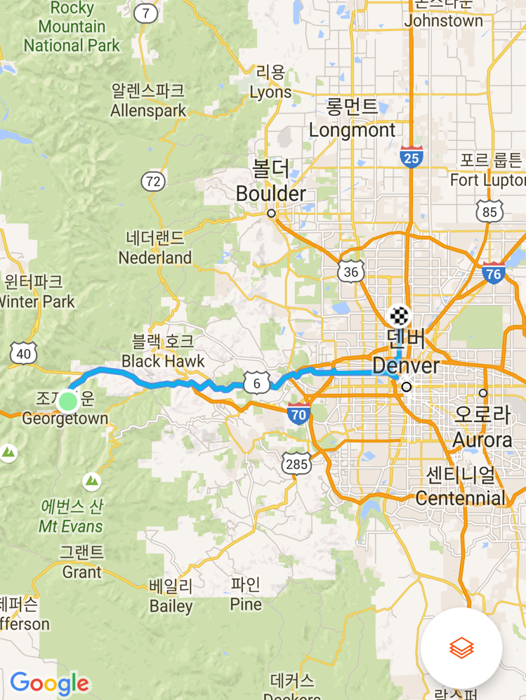 오늘 탄 거리: 96km (Georgetown ~ Denver)