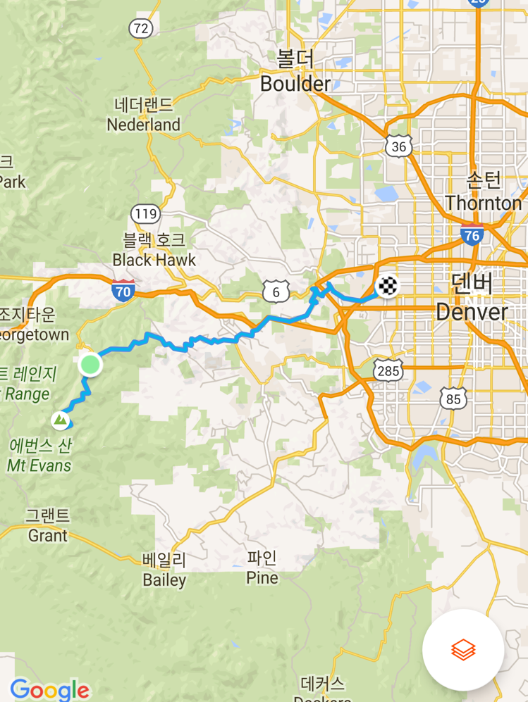오늘 탄 거리: 117km (Mt. Evans ~ Denver)