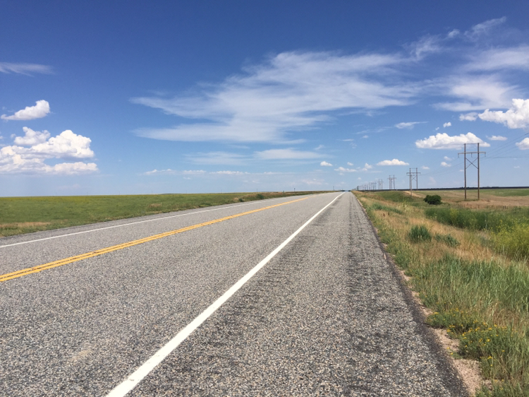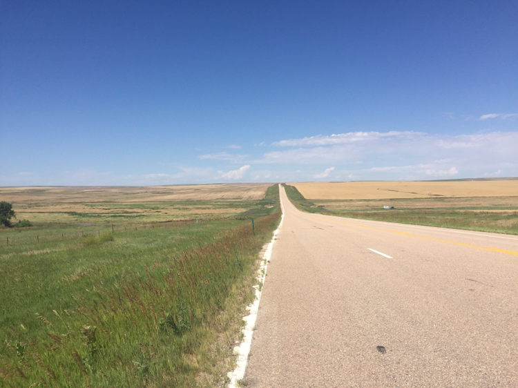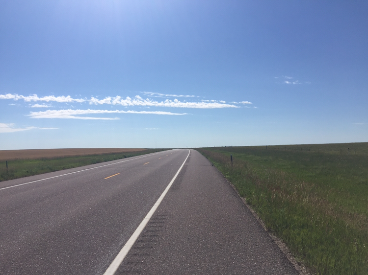처음에는 '차도 없고 좋은데?' 싶었지만 계속 똑같은 풍경(사막은 지형 변화라도 있는데 여긴 그런 것도 없다)을 쳐다보니 뭔가 제자리 걸음 하는 기분이 들면서 미칠 지경. 그래도 역풍이 안 부는 게 어딘가 싶다.