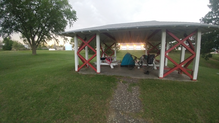 이런 시골 동네 치고는 꽤나 큰 마을이다. 지칠대로 지쳐 인근 모텔로 향했는데, 바로 반대편에 노숙하기 완벽한 공원이 있었다. 일단 수도꼭지가 있다는 것 하나만으로도 합격. 고민을 좀 하다가 그냥 노숙하기로. (이렇게 점점 노숙이 더 편해지는 기분이 든다.) 예보를 보니 내일과 내일 모래도 역시나 역풍... 대책이 필요할듯 하다.