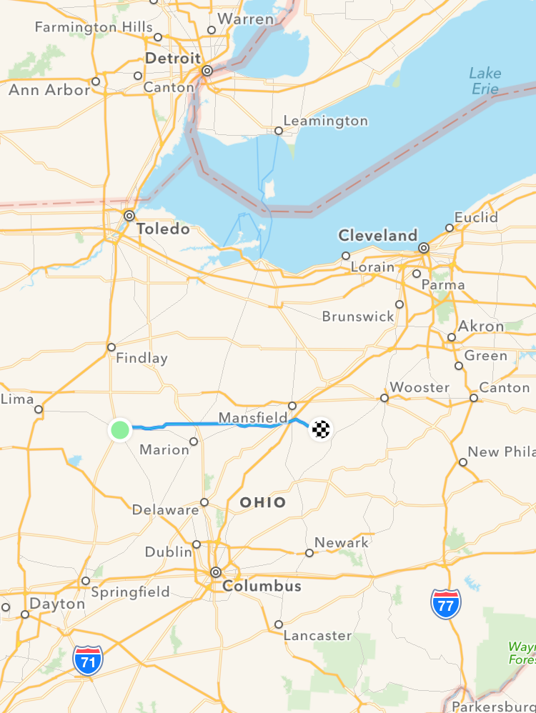 오늘 탄 거리: 121km (Kenton ~ Pleasant Hill)
