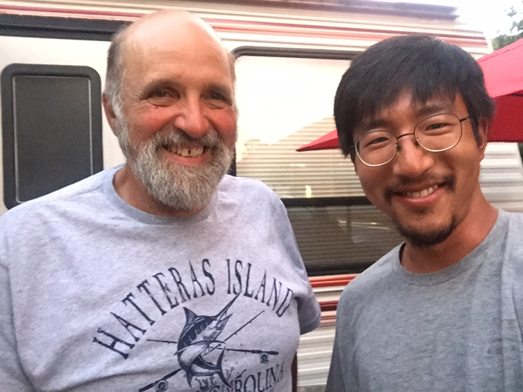 장을 보고 들어가니 경찰이 순찰을 돌면서 나보고 돈을 냈냐고 물었다. 아직 안 냈다고 하자 봉투를 건네주며 꼭 내라고 하는데 뒤에서 어떤 아저씨가 자기 구역에서 나를 재우겠다며 비용을 청구하지 말라고 그랬다. 난 텐트를 그대로 그 아저씨의 RV옆으로 옮겼다.