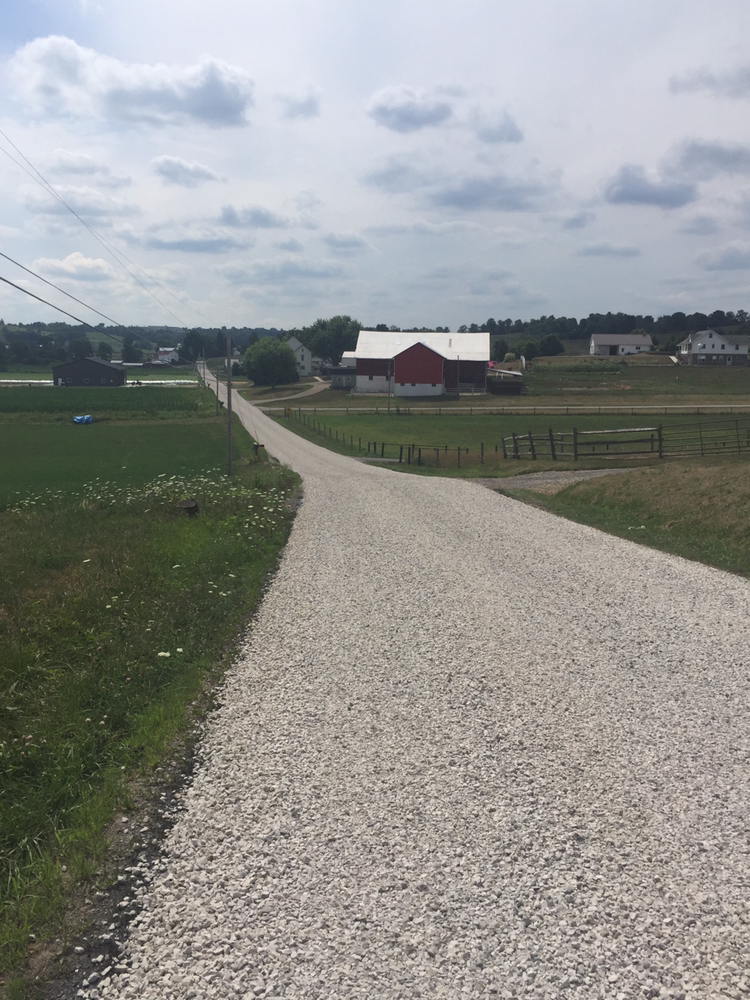 아미시 마을이 아름답고 다 좋은데 딱 한 가지 불만이 있었다. 멀쩡한 길바닥에 자갈을 뿌려놨다... 아마 마차들이 다니기 더 편하라고 해놓은 것 같은데, 내가 차를 탔다면 상관 안 하겠지만 짐을 잔뜩 실은 로드 자전거이기에 넘어질까 조마조마하면서 탔다. 그런데 아미시 사람들은 이런 가파른 자갈길도 아무렇지도 않다는 듯이 오르더라.