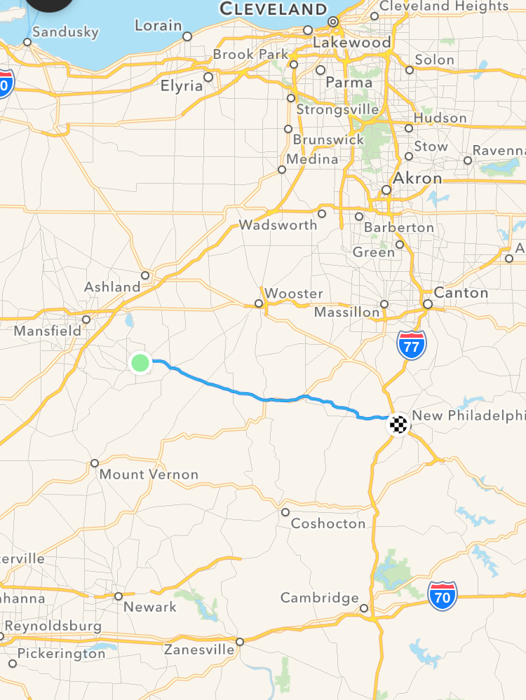 오늘 탄 거리: 87km (Pleasant Hills ~ New Philadelphia)