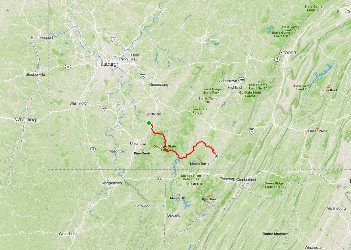 오늘 탄 거리: 103km (Connellsville ~ Meyersdale)