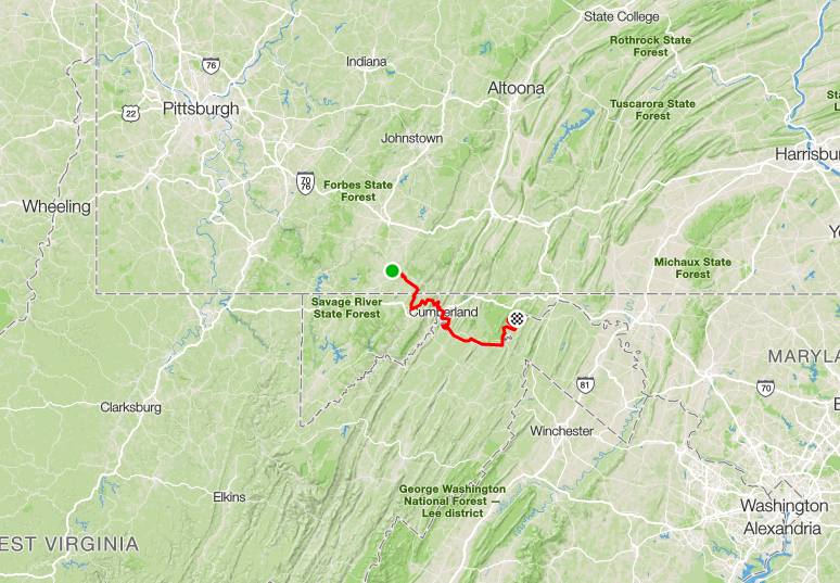 오늘 탄 거리: 123km (Meyersdale ~ Little Orleans)