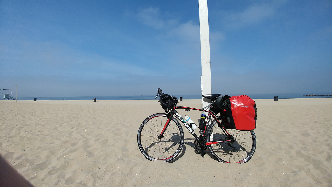 이래저래 피곤했던 어제를 뒤로하고 오늘은 본격적으로 횡단을 시작했다. 미국횡단을 할 때 처음과 끝에서 태평양/대서양에 바퀴를 한 번 씩 담그는 전통이 있다고 한다. 그래야 진짜 coast-to-coast라나... 어쨋튼 재밌다고 생각되어 나도 바퀴를 담그러 해변으로 나갔다.
