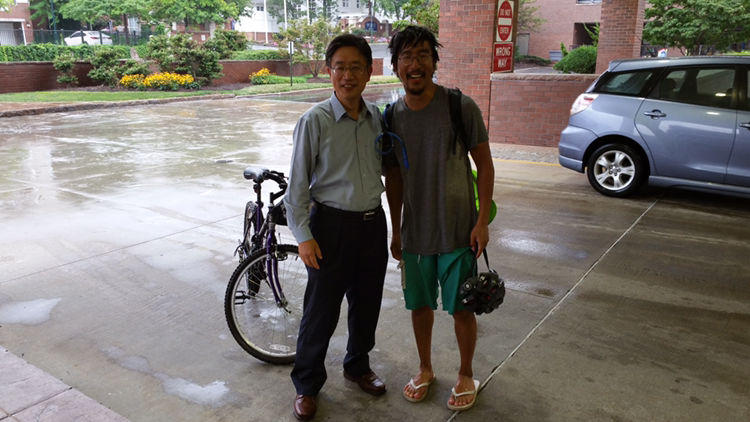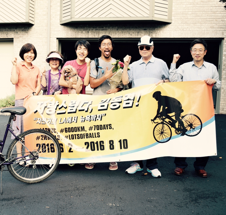 오히려 비를 맞으면서 시원하게 쭉쭉 달렸다. 바람이 뒤에서 불었기에 그것만으로도 감사했다. 그렇게 조지 워싱턴 다리를 통해 허드슨 강을 건너 아빠 회사로 들어가는데, 드디어 가족을 본다는 생각에 떨리는 마음으로 천천히 갔다. 회사 앞에 다가서니 아빠를 비롯한 회사 동료분들 몇 명이 박수치면서 나를 맞아주셨다. 아, 그래도 내가 무언가를 하긴 했구나.