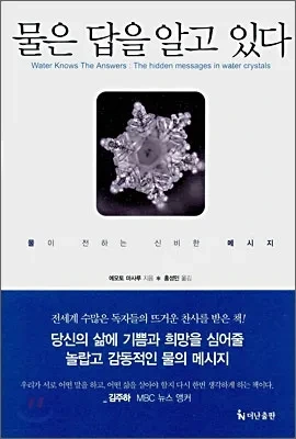 이 것의 유레는 일본에서 2001년에 출판하고, 한국에는 2002년에 첫 번역된 서적. 원제는≪水は答えを知っているその結晶にこめられた メッセージ≫(물은 답을 알고 있다 그 결정에 담겨 있는 메시지)에서 시작되었는데 책의 주장은 “좋은 말을 하고, 나쁜 말을 줄이면서 물을 통해 우리의 몸을 건강하게 하자. 우리의 몸도 70%가 물이기에 물과 마찬가지로 좋은 말을 할수록 몸에 좋다.” 철학적인 의도는 좋다고 할지 모르겠다. 하지만 그렇다고 주제에 대한 근거가 허무맹랑한 것을 내세우는 것은 용납할 수 없다. 책의 내용을 보면 일본 신토의 황조신(皇祖神) 아마테라스의 이름을 발음하면 물의 결정이 예뻐진다는 허무맹랑한 주장도 있다. 국내에서도 이 책이 유명해진 이유는 한 때 베스트셀러로 팔리고 중고등학생 권장도서에도 실렸으며 이것은 현재 진행형이다. 나도 중고등학교를 다니며 정규과정 중에 이런 것을 본 것이 기억이 나며, 비교적 최근의 일로는 군대에서 양파 뿌리를 가지고 물에 담가 놓고 뿌리가 가장 길게 자란 분대를 꼽아서 전화 5분 시켜준다고 해서 분대원들은 별짓을 다했던 걸로 기억한다. 그런데, 어떤 것은 천장에 달아 놓아서 아무런 관심도 받지 못하고 물에도 담가 놓지 않았는데 나중에 뜯어보니 허공에서 제일 많이 자랐다. 물론 이 물이야기는 한국뿐만이 아니라 책을 출판한 일본에서도 세계적인 유사과학 취급을 받는다.