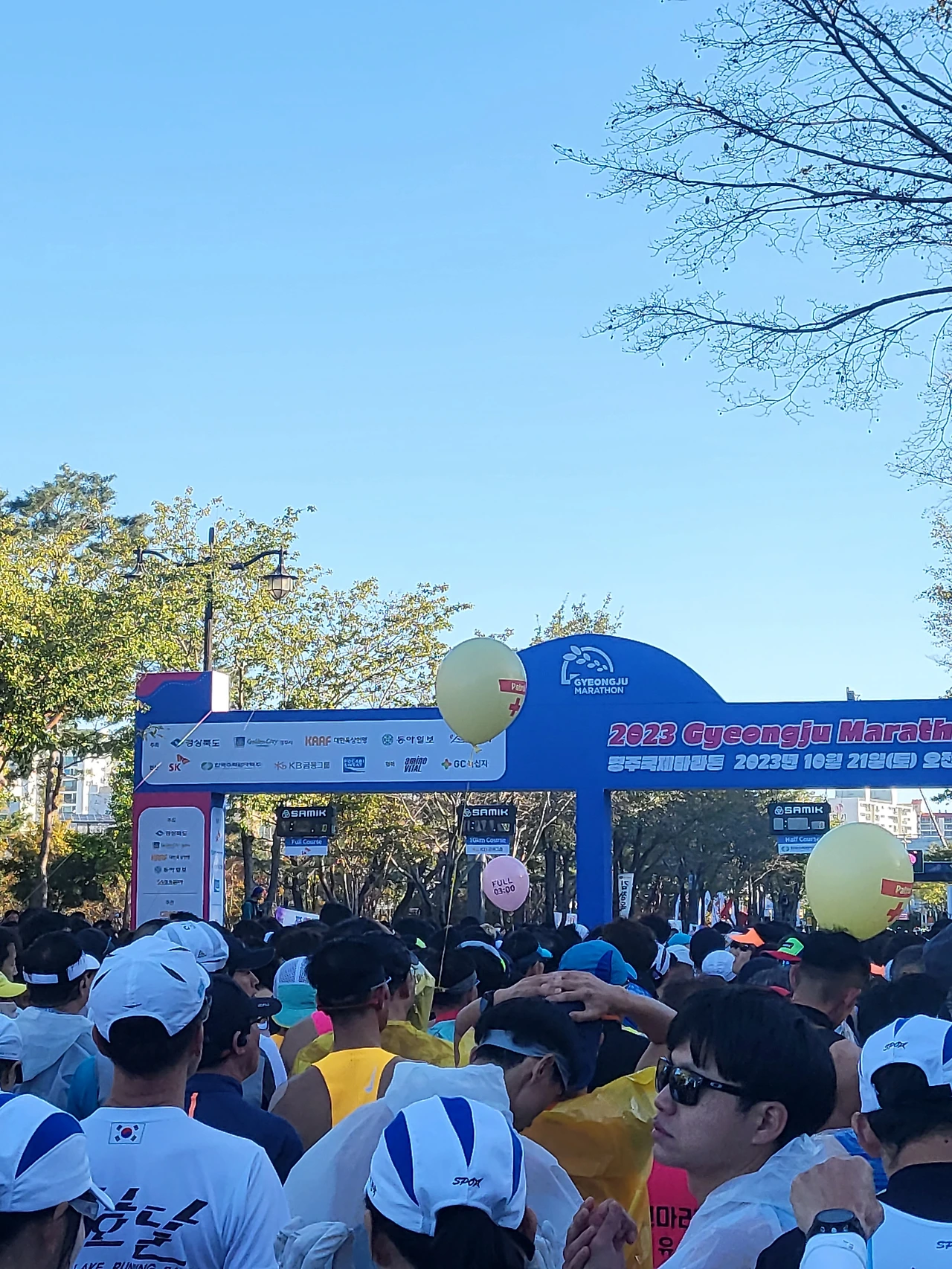 대회장에 도착한 후, 인산인해한 현장에서 서둘러 짐을 보관하고 레이스 출발점에 도착했다. 몸을 제대로 풀고 싶었지만 앉아서 한쪽 다리를 뻗기도 힘들 만큼 주변에 참가자들이 많아 준비 운동을 짧게 마쳤다.